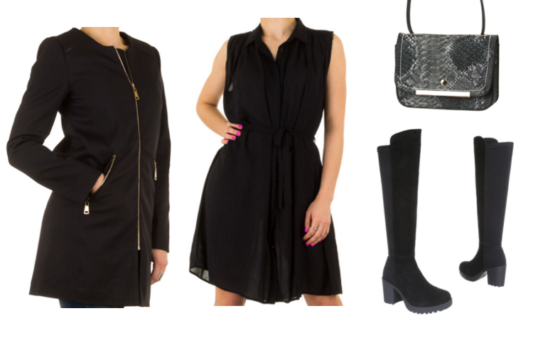Bei diesem Frühlingsoutfit handelt es sich auch um ein komplett schwarzes. Lediglich die Knie lassen einen Blick auf deine Hautfarbe werfen. Das Kleid erinnert an eine lange Bluse. Es ist luftig und locker und kann sowohl zur Arbeit als auch in der Freizeit getragen werden. Damit haben wir Stiefel kombiniert, die einen hübschen Absatz haben und generell vom Stil her sehr elegant ausfallen. Der Mantel kann offen oder an kälteren Tagen auch geschlossen getragen werden. Er ist ein wahrerer Allrounder, denn zahlreiche Outfits können mit ihm kombiniert werden.
