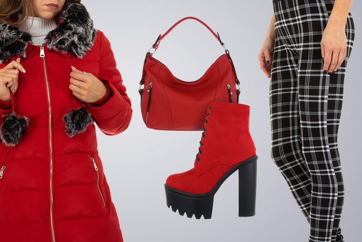 Hoch hinaus geht es mit unserem zweiten kompletten Outfit mit Schnürstiefeletten. Und das liegt natürlich an den aufregenden roten High-Heel Boots mit extrahohem Plateau und schwindelerregend hohem Absatz. Dieser streckt die Beine der Trägerin gekonnt in die Länge und zaubert so eine wunderbare Silhouette, welche zusätzlich modisch gekonnt durch die stretchigen High-Waist Leggings mit Karomuster unterstrichen wird. Perfekt zur Leggings passt ein weißer Rippstrickpullover mit Stehkragen und Volantärmeln. Und für die kalten Abende und den Weg zum Restaurant oder zur Party gibt es einen kuscheligen roten Steppmantel mit Teddyfleecefutter. Abgerundet wird das Outfit schließlich durch die farblich zu den Schnürstiefeletten und zum Mantel passende große rote Beuteltasche mit Zierreißverschlüssen und abnehmbarem Umhängeriemen. Genau Dein Look? Dann klick Dich gleich mal in den Online-Shop von Ital-Design und sichere Dir alle Einzelteile und natürlich die tollen High-Heel Lace-Up Boots billig online. Wir freuen uns auf Deinen Besuch!