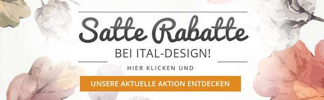 Erhalte ab sofort und noch bis zum 10. März im Online-Shop von Ital-Design satte 20 % Rabatt auf Deine gesamte Bestellung, indem Du den Gutscheincode 20KOMPLETT verwendest.* Alle Details zu unserer tollen Rabattaktion findest Du weiter unten im Text oder HIER IM SHOP zum Nachlesen. Viel Spaß beim Entdecken und Sparen!