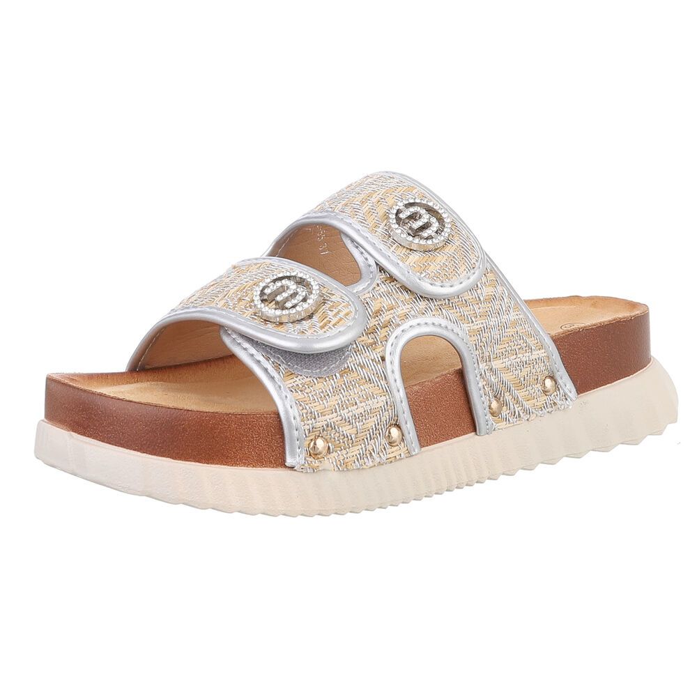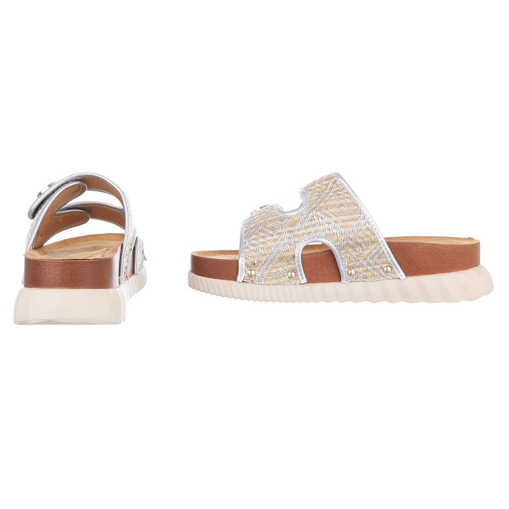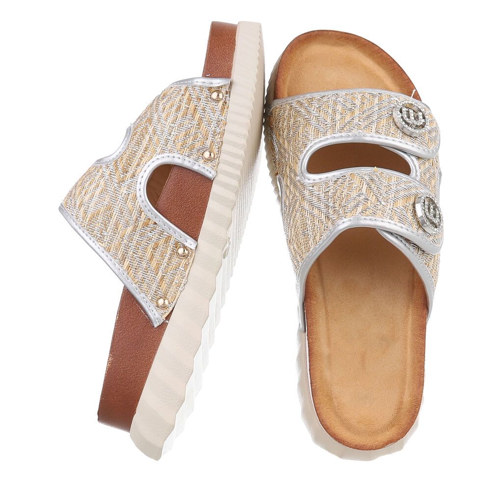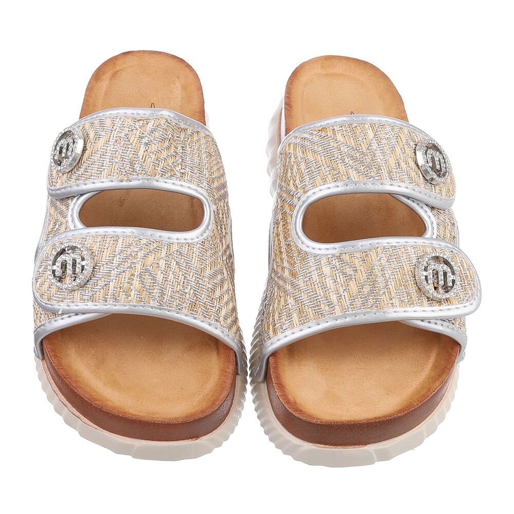 Plateausandaletten für Damen in Silber und Beige