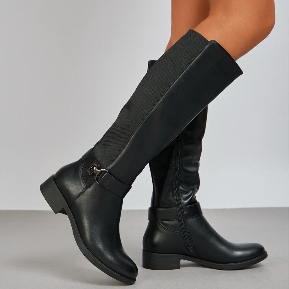 Flache Stiefel für Damen in Schwarz