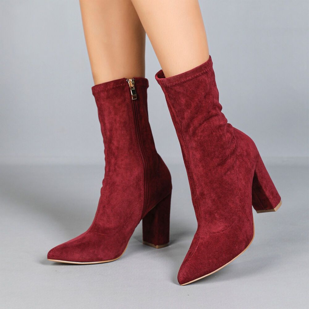 High-Heel Stiefeletten für Damen in Weinrot