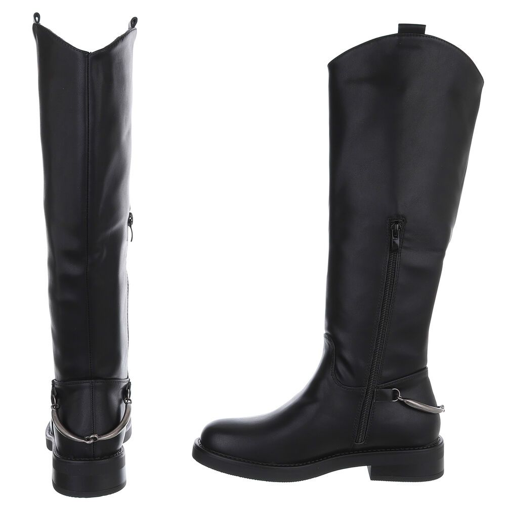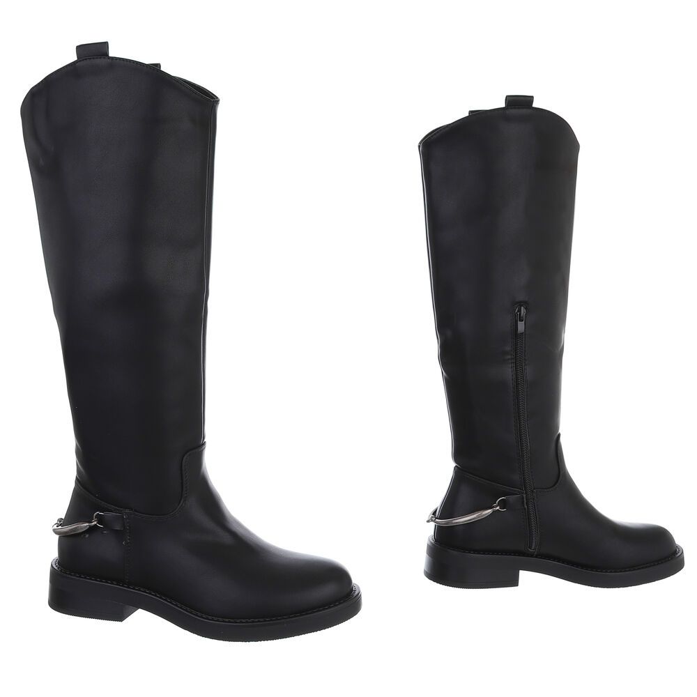Flache Stiefel für Damen in Schwarz