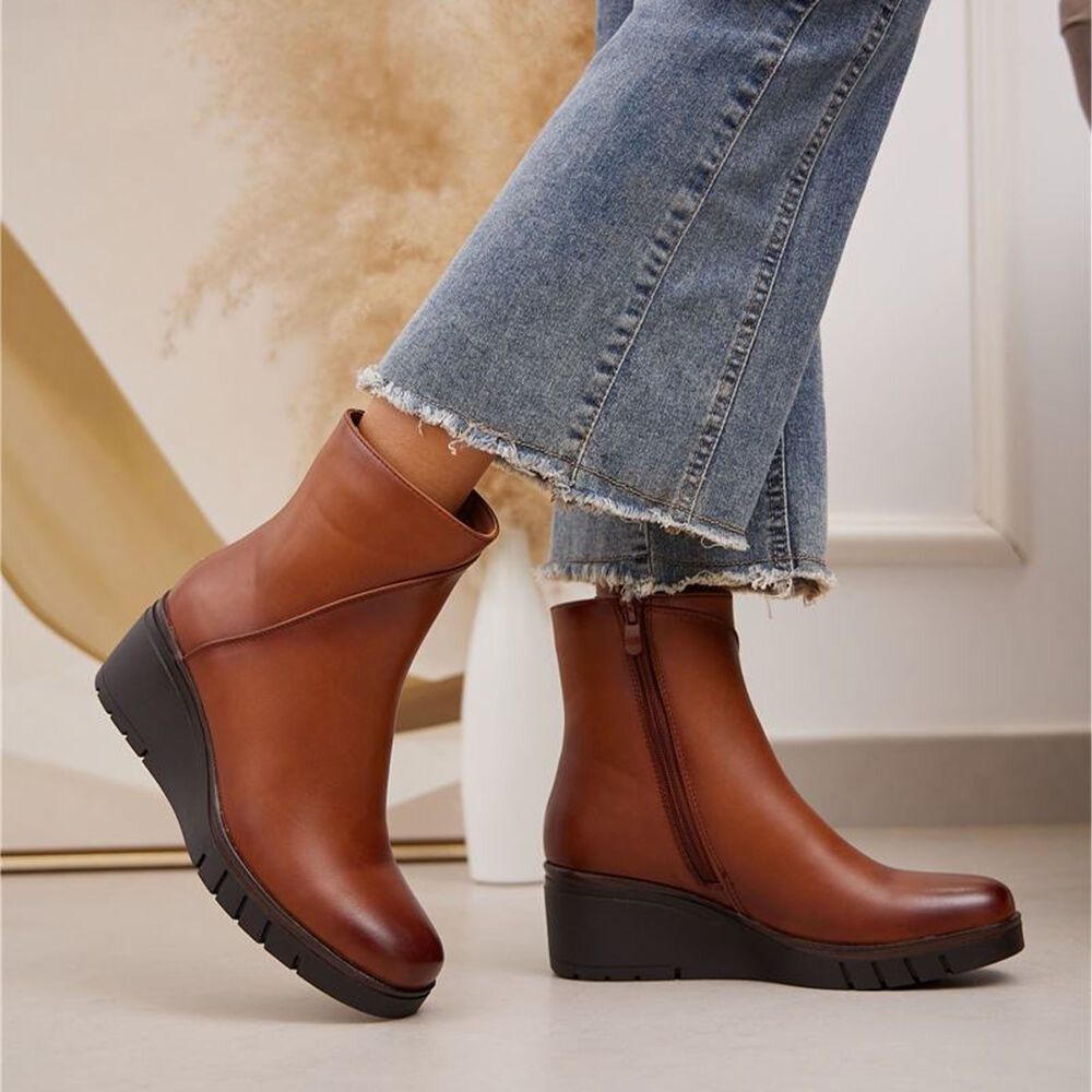 Keilstiefeletten für Damen in Camel