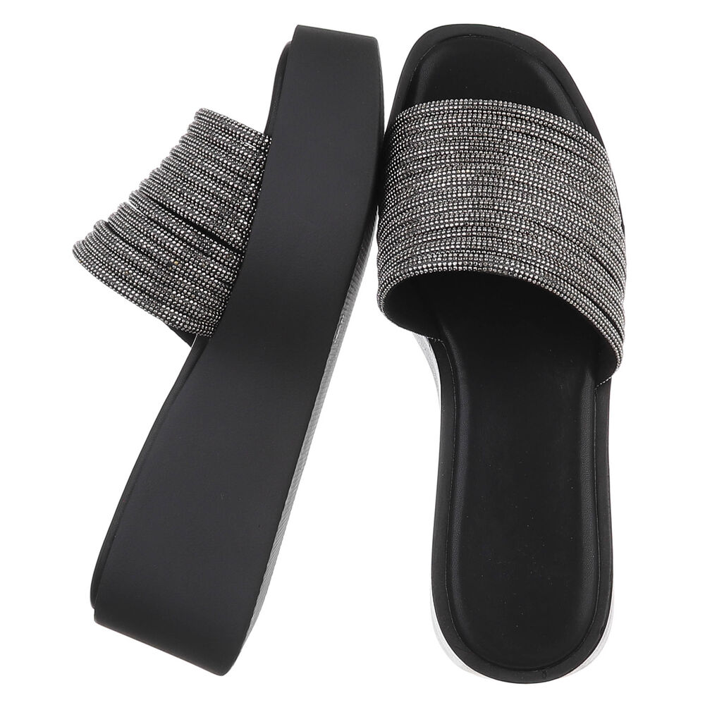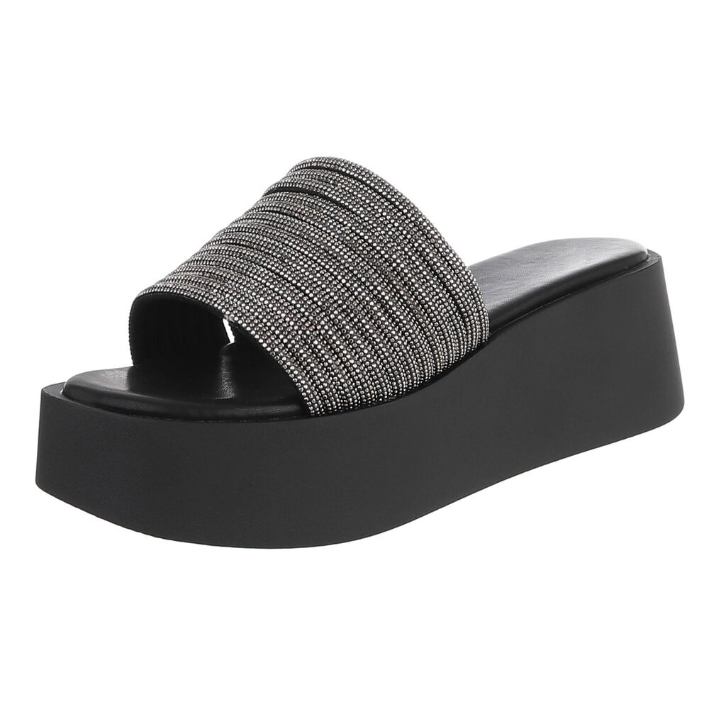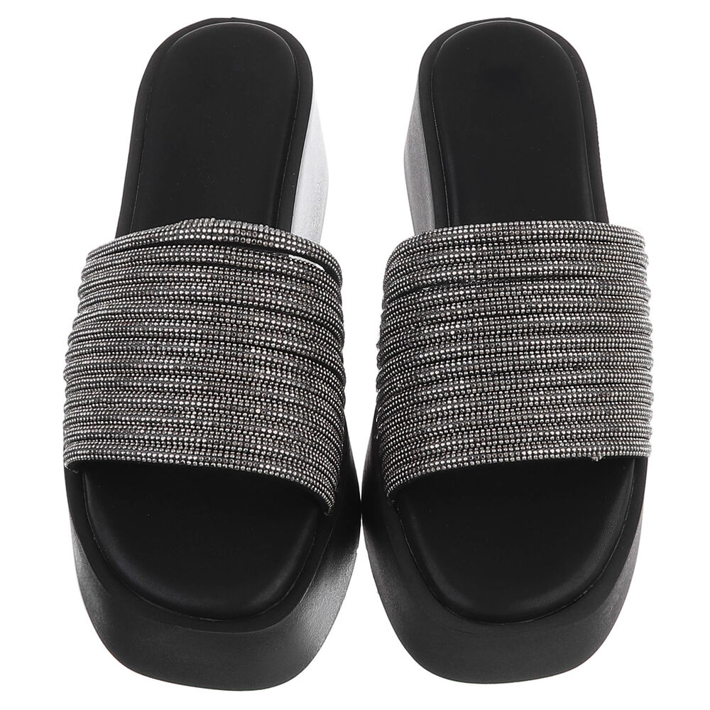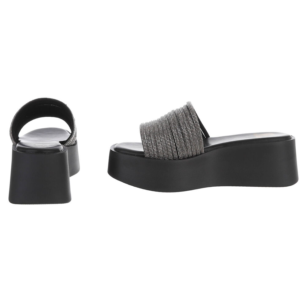 Plateausandaletten für Damen in Schwarz und Silber