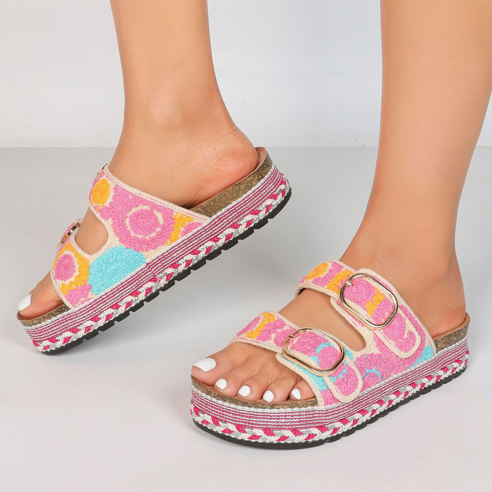 Plateausandaletten für Damen in Pink und Orange