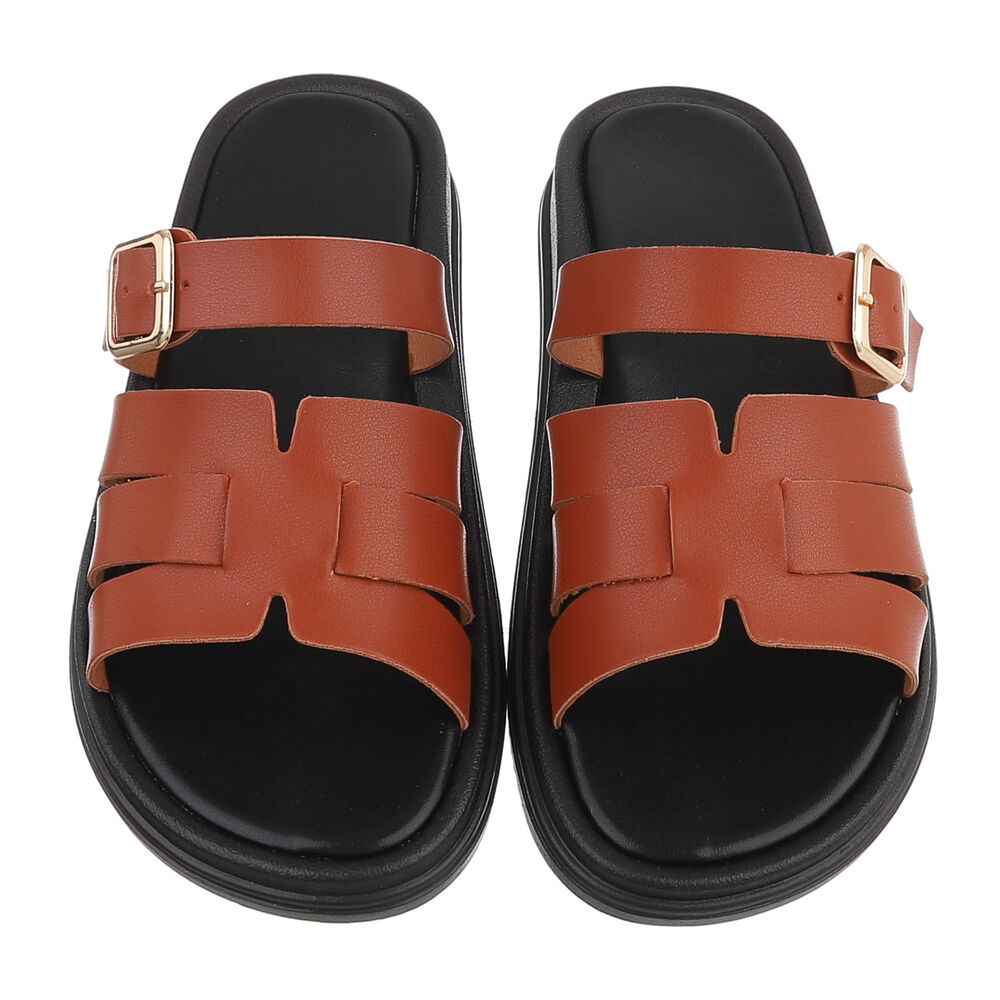 Pantoletten für Damen in Camel