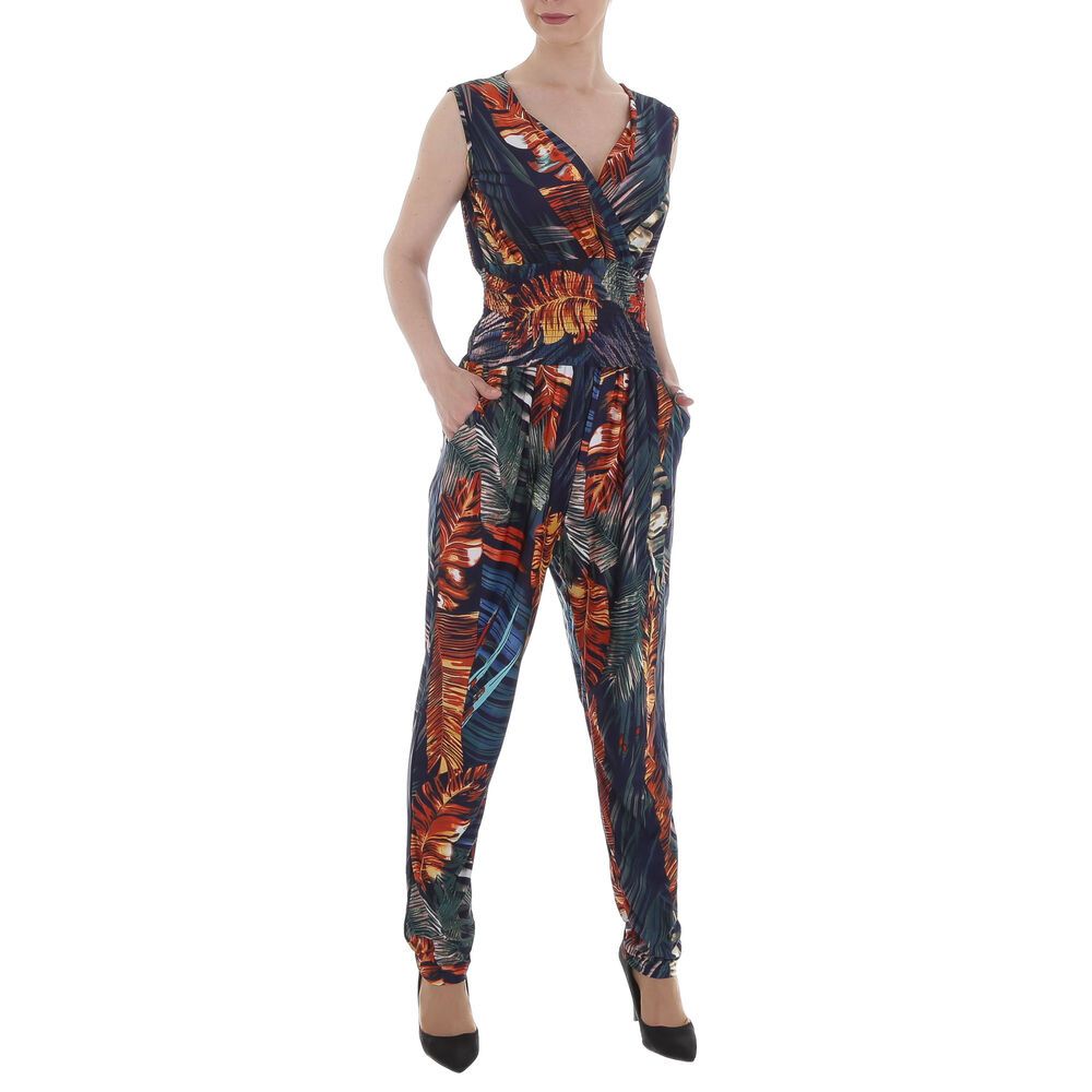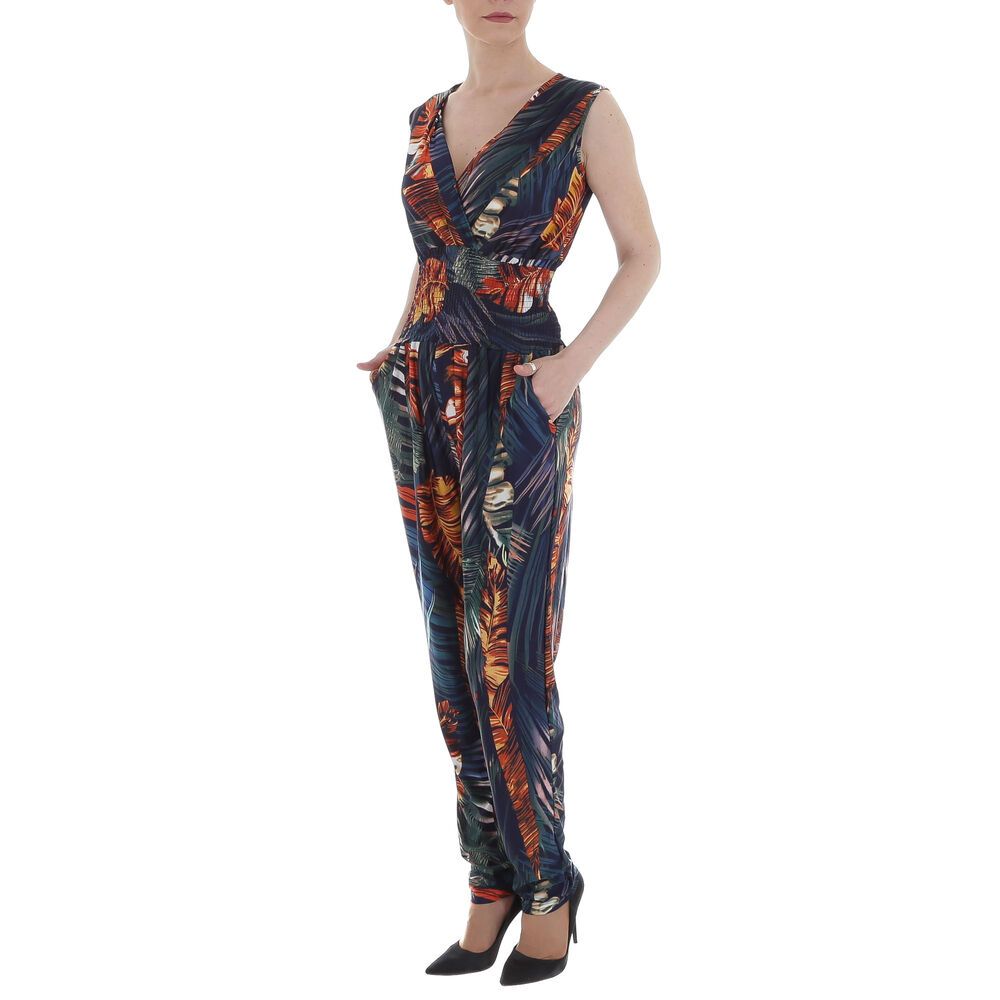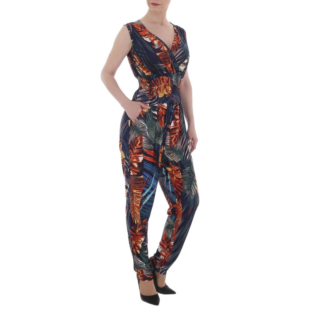 Long jumpsuit for women in blue and orange