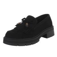 Loafers for women in black Type Flats & Lace-ups, Moccasins, Loafers Heel Block heel Heel height aprox. 4 cm Plateau height aprox. 2 cm Shoe tip Round Material Textile Inside material Synthetic Material sole Synthetic Material optic Suede-look Material properties...