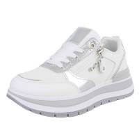 Low-top sneakers for women in white and silver Type Casual Shoes, Low-top Sneakers Closure Hole lacing Heel Wedge, Plateau Heel height aprox. 5 cm Plateau height aprox. 3 cm Shoe tip Round Optical details Strass Material Synthetic Inside material Synthetic, Textile Material sole...