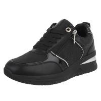Low-top sneakers for women in black and silver Type Casual Shoes, Low-top Sneakers Closure Hole lacing, Zipper Heel Wedge Heel height aprox. 4 cm Plateau height aprox. 2 cm Shoe tip Round Material Synthetic Inside material Textile, Leather Material sole Synthetic Material optic...