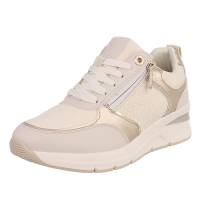 Low-top sneakers for women in beige and gold Type Casual Shoes, Low-top Sneakers Closure Hole lacing, Zipper Heel Wedge Heel height aprox. 3 cm Plateau height aprox. 2 cm Shoe tip Round Material Textile, Synthetic Inside material Textile, Synthetic Material sole Synthetic Material...