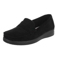 Loafers for women in black Type Flats & Lace-ups, Moccasins, Loafers Heel Wedge Heel height aprox. 3 cm Plateau height aprox. 2 cm Shoe tip Round Material Textile Inside material Textile, Leather Material sole Synthetic Material optic Suede-look Material...