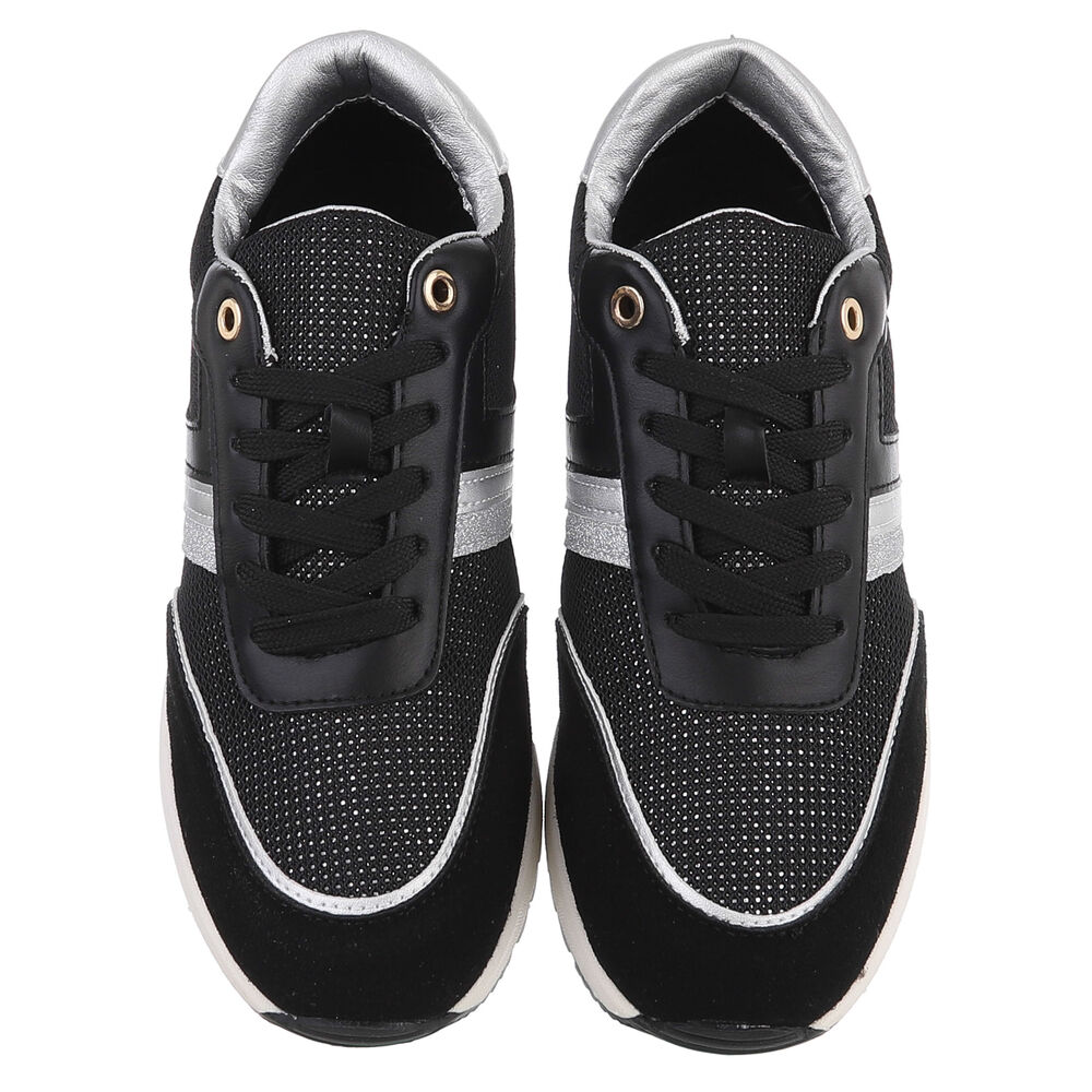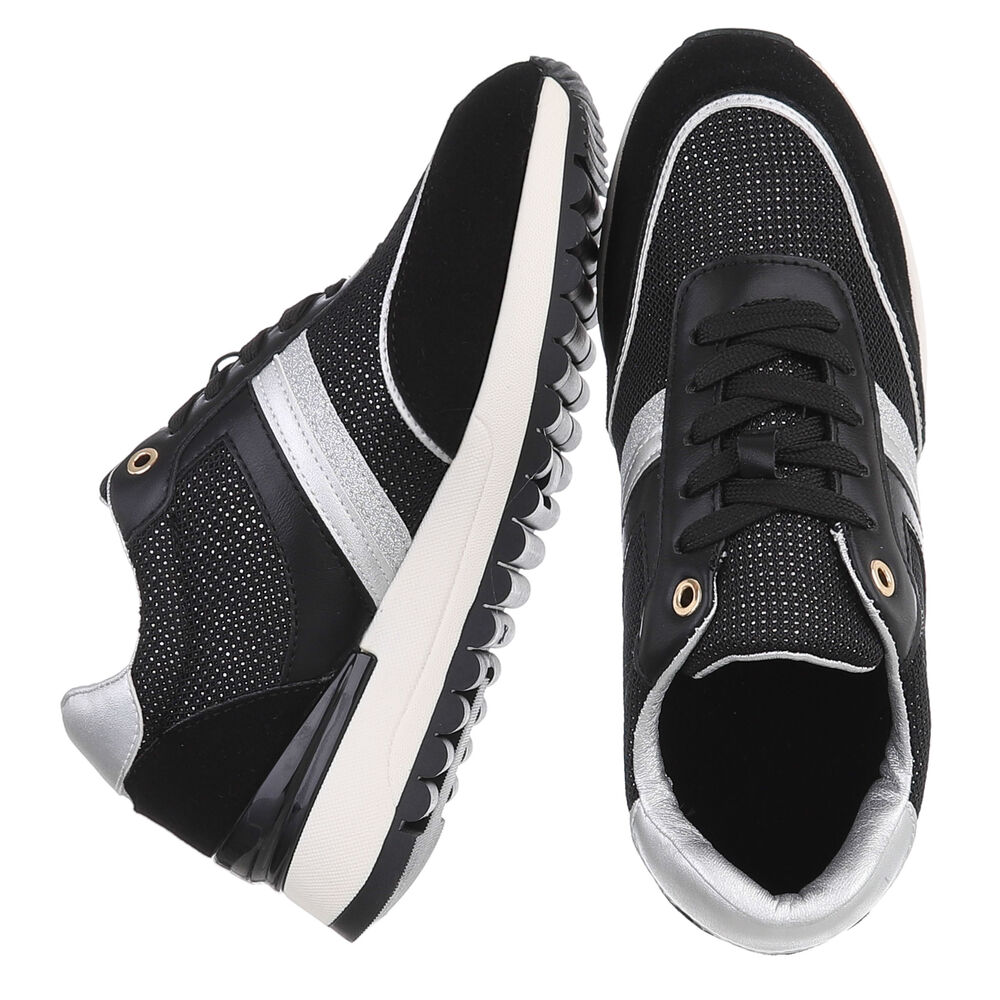 Low-top sneakers for women in black and silver
